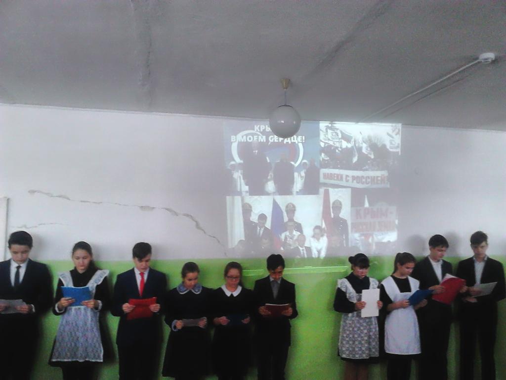 Общешкольная линейка, посвящённая восооединению Крыма с Россией