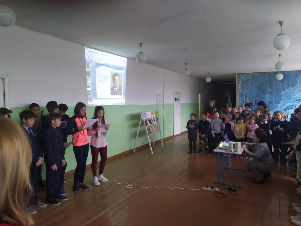Обучающиеся 5, 6, 7, 8, 9 классов под руководством учителя башкирского языка Муллаяновой Ф.Р. разыграли перед учащимися школы отрывки из литературных произведений Мустая Карима. В ходе мероприятия были звучали стихи в исполнении не только учащихся, но и самого автора. Была продемонстрирована интересная презентация о детсве, юности и творчестве поэта. Мероприятие завершилось исполнением песни на стихи Мустая Карима "Укытучым".