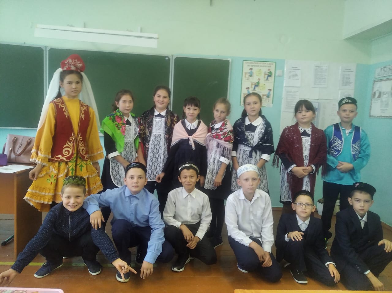 5 класс участвовал в акции "Я учусь в национальном костюме"