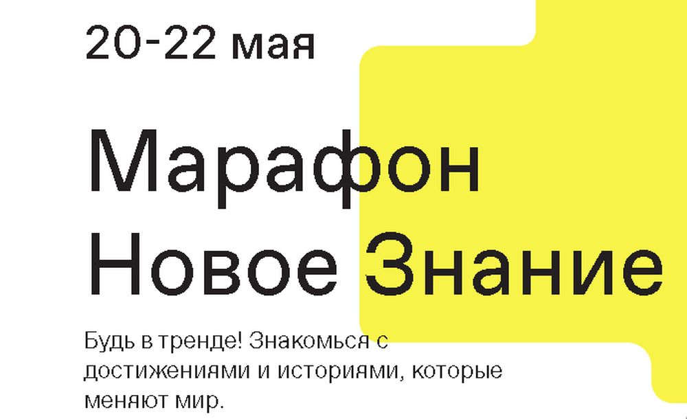 Сегодня, 20 мая, Российское общество «Знание» начинает проводить масштабное мероприятие – просветительский марафон «Новое Знание». Мероприятие будет идти три дня – до 22 мая 2021 года. Он станет отправной точкой для новых форматов работы общества «Знание» как современной высокотехнологичной платформы федерального охвата.