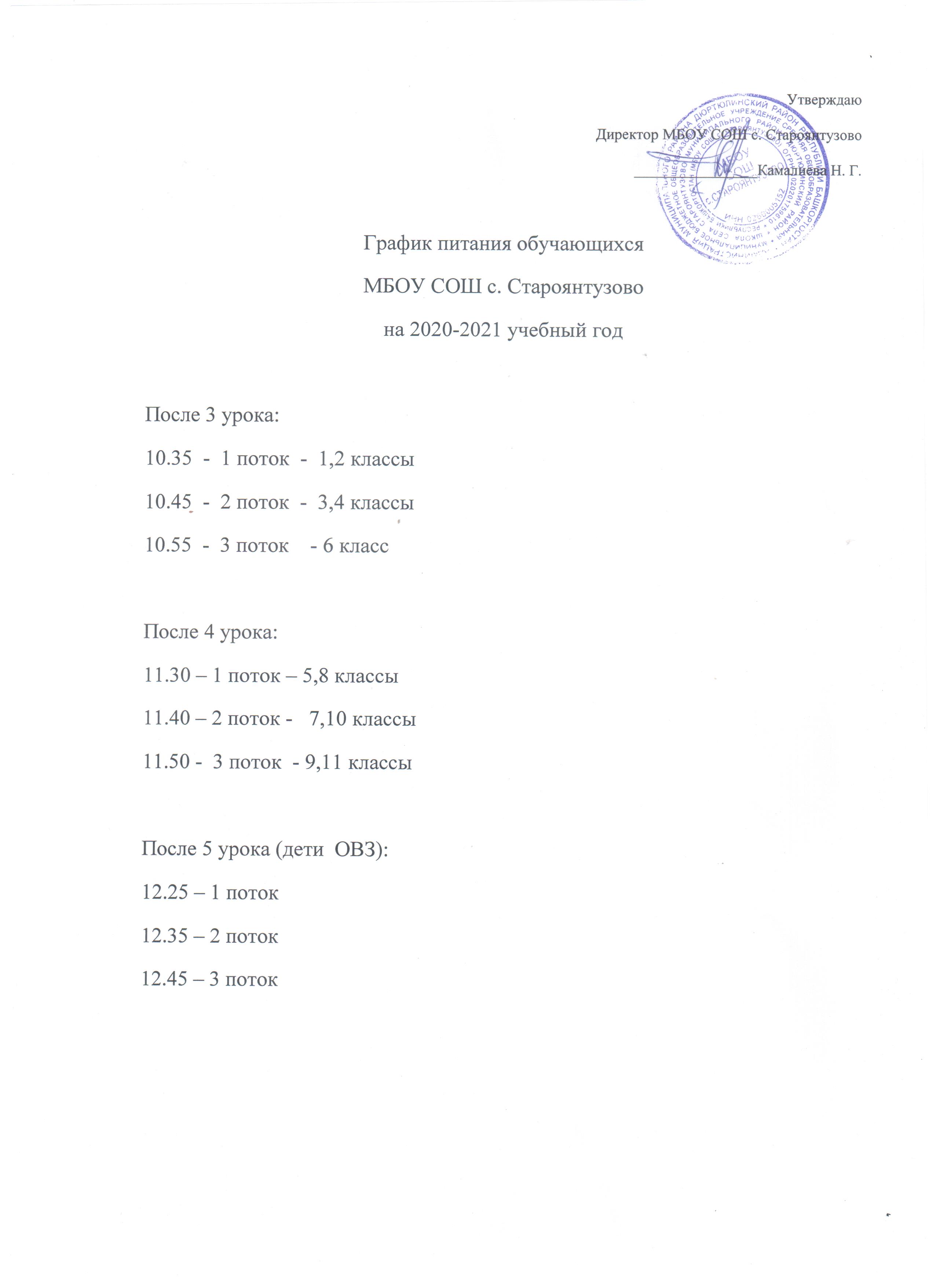 График питания учащихся в школьной столовой