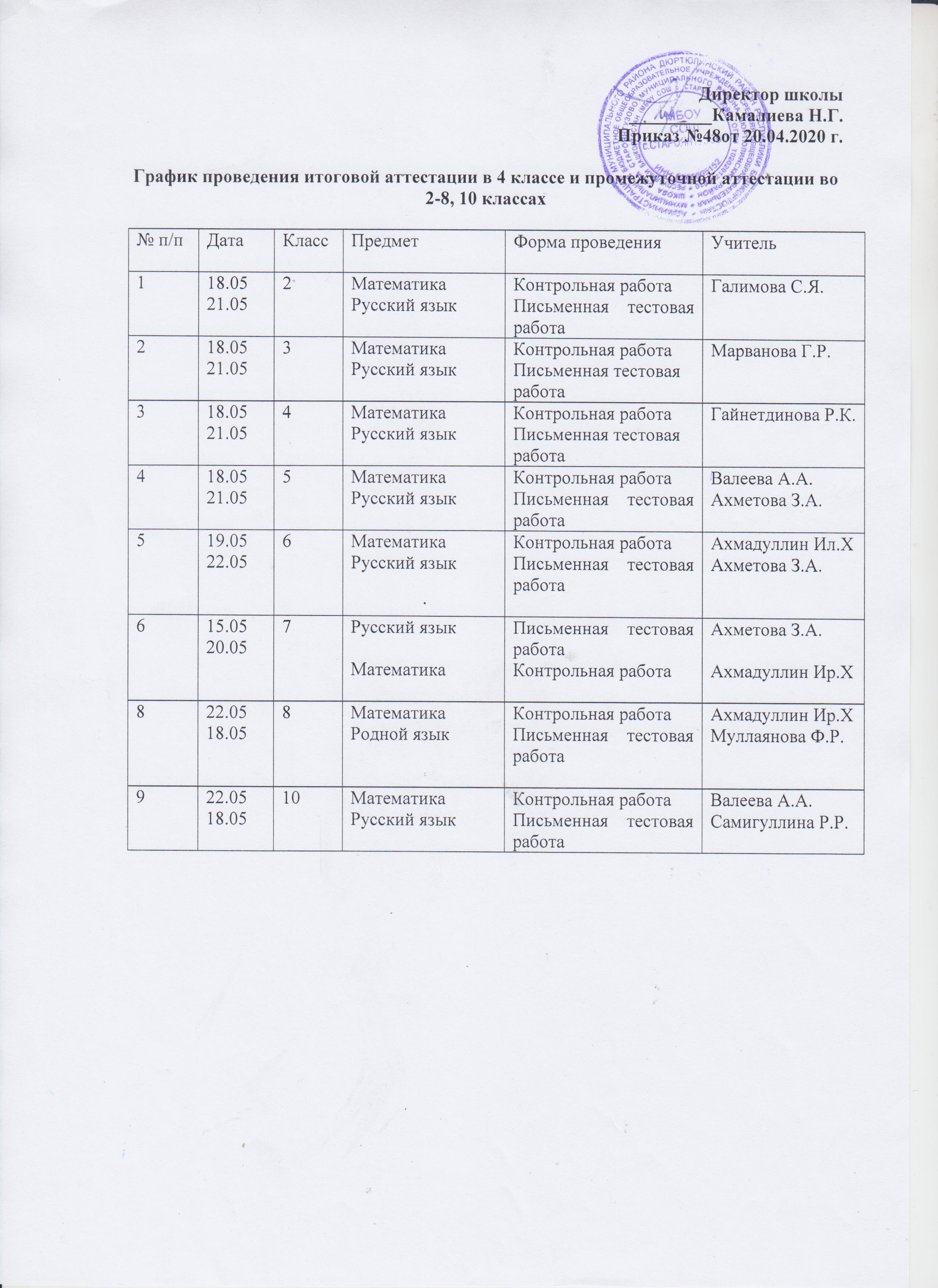 Учитель составляет график текущего и итогового контроля по учебному предмету с указанием даты планируемого контроля и формы выполнения заданий.